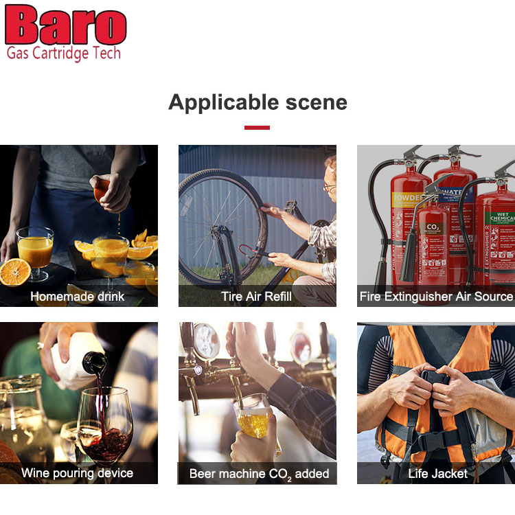 Τα φυσίγγια κορυφαίας ποιότητας 33g CO2 προορίζονται για χειροκίνητη έκδοση φουσκωτού σωσίβιου (συμπεριλαμβανομένου σωσίβιο, τσάντα ζώνης ή προσωπικής συσκευής επίπλευσης (PFD). Κύλινδροι φυσίγγια CO2 45g για φουσκωτό σωσίβιο είναι συμβατό με σωσίβια και χρησιμοποιεί 1/2 ιντσών thre Φυσίγγιο CO2.