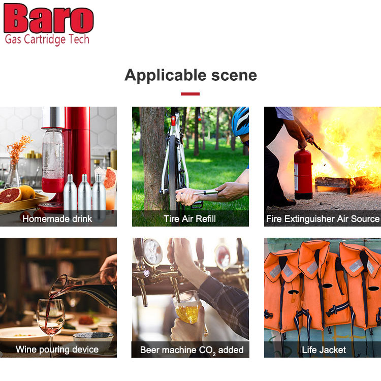 Τα δοχεία CO2 Baro 74g για διανομή μπύρας χρησιμοποιούν σύστημα καπακιού/κλεισίματος για να διασφαλιστεί ότι δεν υπάρχουν διαρροές αερίου και μεγάλη διάρκεια ζωής. Τριπλό φιλτράρισμα, γεύση και ασφάλεια. μη επαναγεμιζόμενο, μιας χρήσης. Το φυσίγγιο CO2 είναι κατασκευασμένο από 100% ανακυκλώσιμο ανοξείδωτο χάλυβα. Κατασκευασμένα σύμφωνα με τα υψηλότερα πρότυπα, τα κελύφη μας είναι απαλλαγμένα από μεταλλικά θραύσματα και υπολείμματα λαδιού, επομένως δεν θα δώσουν στο ανθρακούχο νερό σας οσμή ή λιπαρή γεύση.