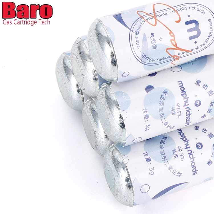 - Οι κασέτες CO2 κατηγορίας τροφίμων για το νερό Seltzer μπορούν να είναι συμβατές με το μηχάνημα σόδας της αγοράς και άλλους φορτιστές διοξειδίου του άνθρακα, κάθε κύλινδρος περιέχει 3 g καθαρού διοξειδίου του άνθρακα ποιότητας τροφίμων, είναι η καλύτερη επιλογή για την παρασκευή σόδας.